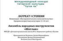 Еще одна победа в копилку ансамбля народных инструментов "Шатлык".