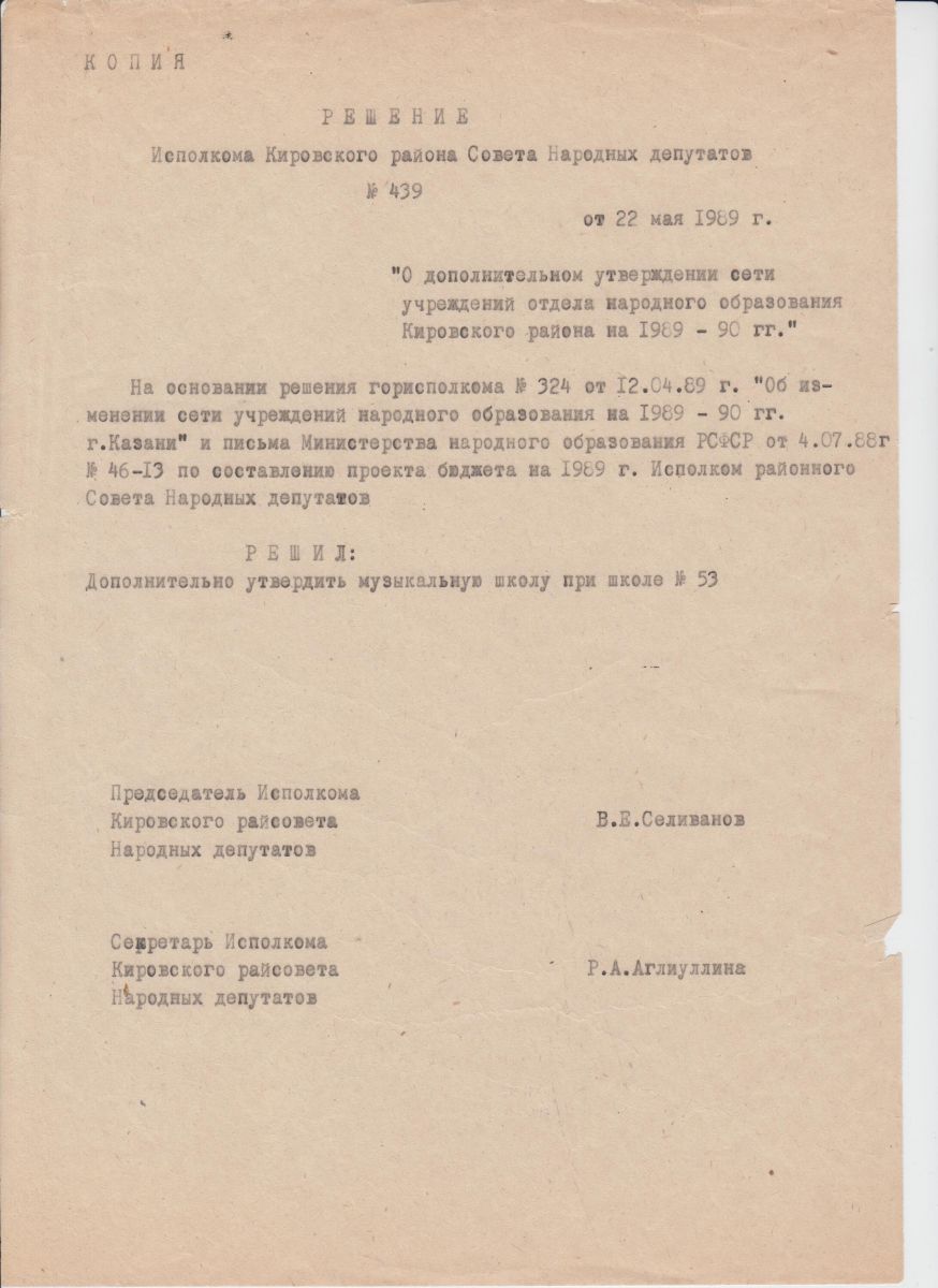 Муниципальное бюджетное учреждение дополнительного образования «Детская музыкальная школа №1" Кировского района» г. Казани