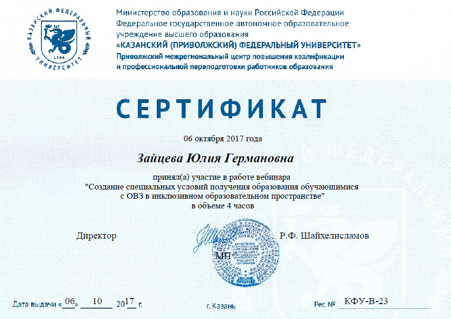 3. Заместитель директора по УВР Ярославцева Н.В. и преподаватель фортепиано Зайцева Ю.Г. - участники вебинара "Создание специальных условий получения образования обучающимися с ОВЗ в инклюзивном образовательном пространстве" (КФУ, 06.10.2017 г.)