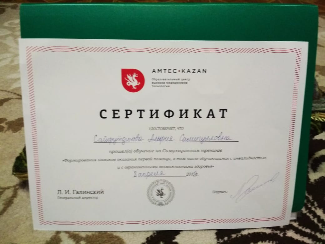 3. Прошли обучение на Симуляционном тренинге "Оказание навыков первой помощи, в том числе обучающимся с инвалидностью и с ограниченными возможностями здоровья" в Образовательном центре высоких медицинских технологий AMTEC-KAZAN - 4 преподавателя.
