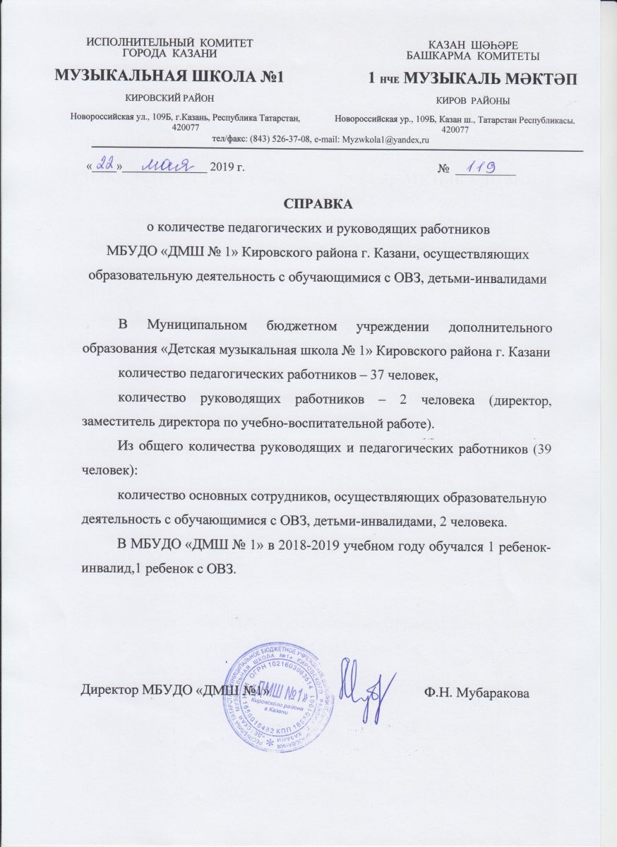 Муниципальное бюджетное учреждение дополнительного образования «Детская музыкальная школа №1" Кировского района» г. Казани