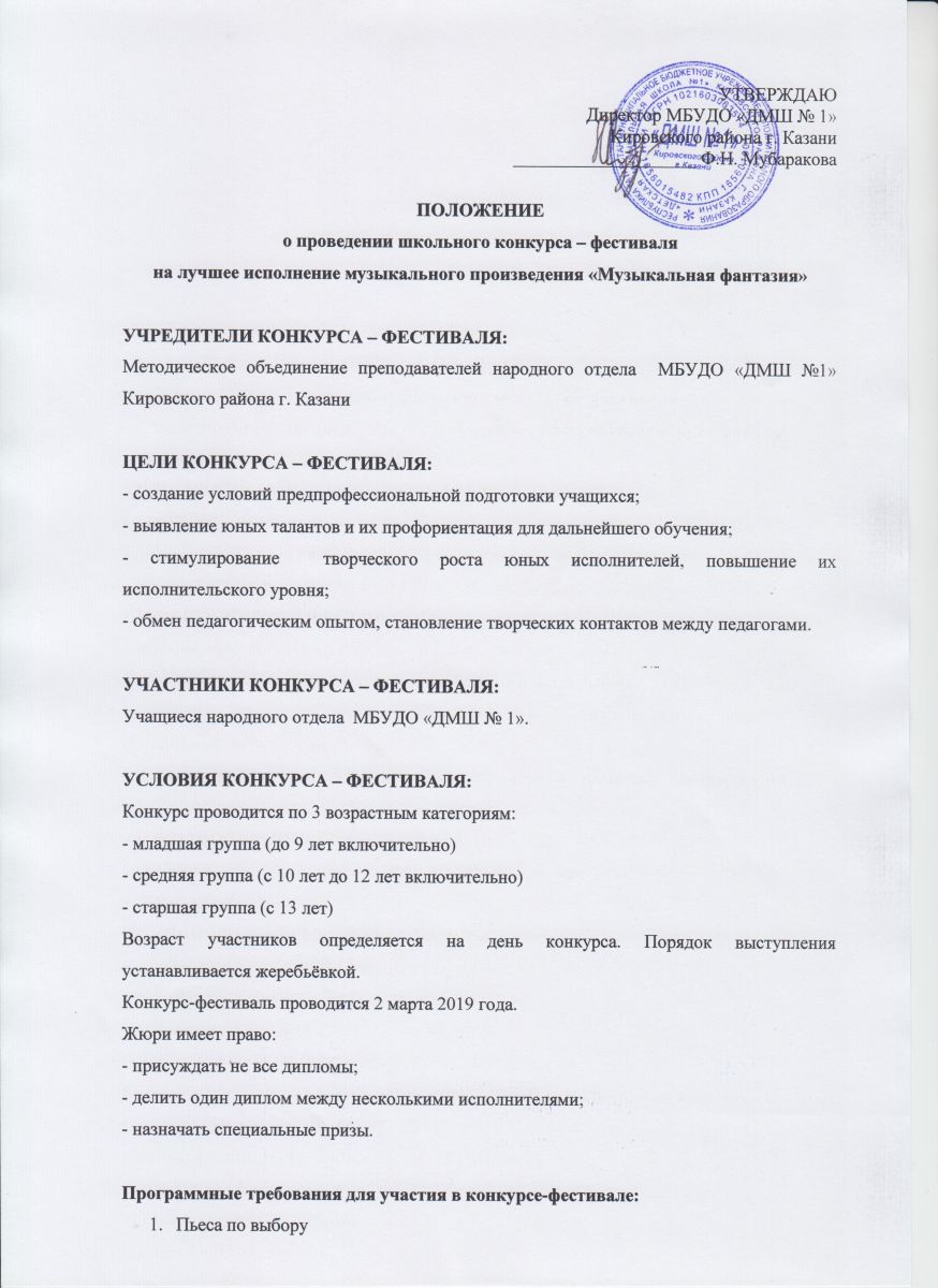 Муниципальное бюджетное учреждение дополнительного образования «Детская музыкальная школа №1" Кировского района» г. Казани
