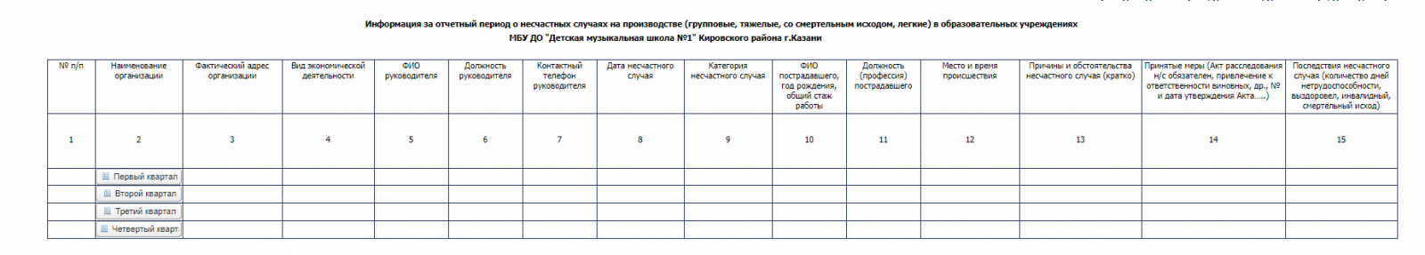 Информация за отчетный период о несчастных случаях в образовательном учреждении