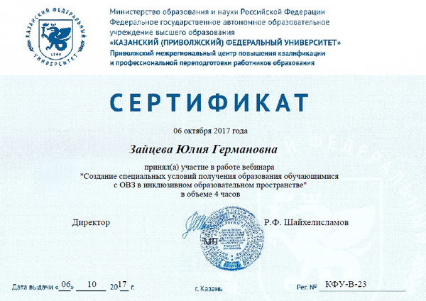 2. Заместитель директора по УВР Ярославцева Н.В. и преподаватель Зайцева Ю.Г. прошли обучение на вебинаре "Создание специальных условий получения образования обучающимися с ОВЗ в инклюзивном образовательном пространстве"