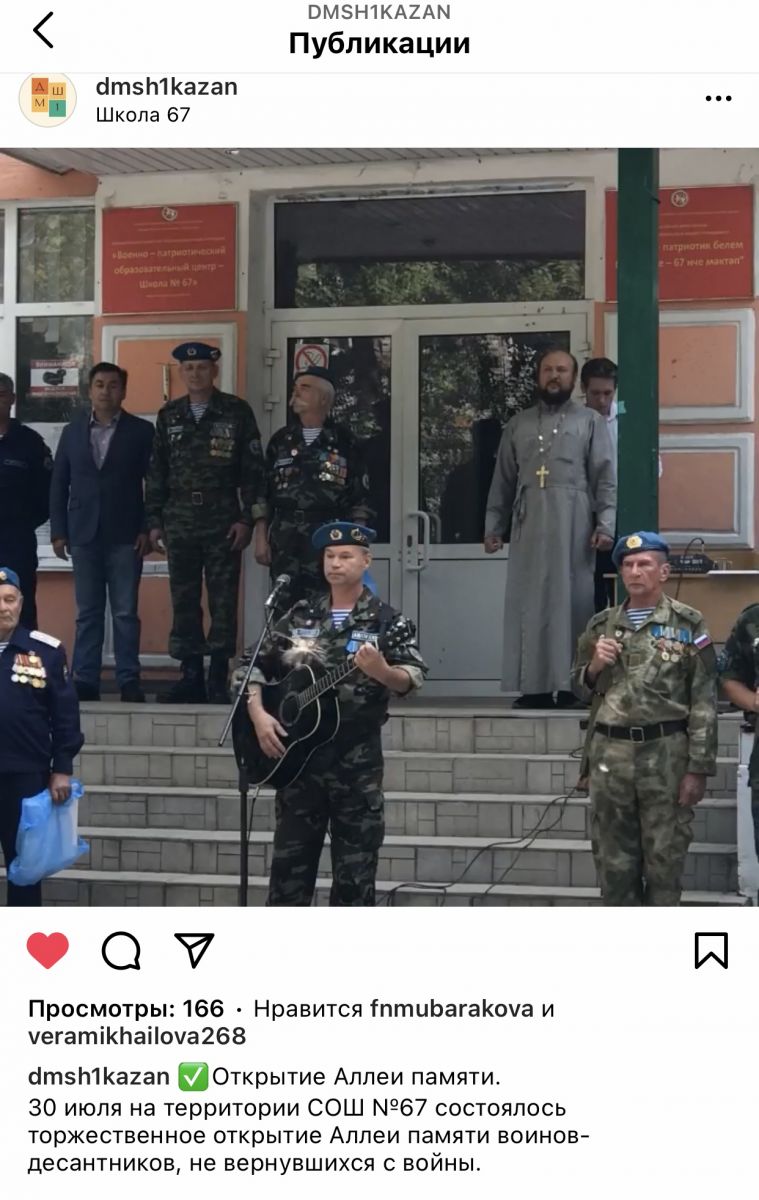 1. Открытие Аллеи памяти воинов-десантников, не вернувшихся с войны на территории СОШ № 67, 30.07.2020.