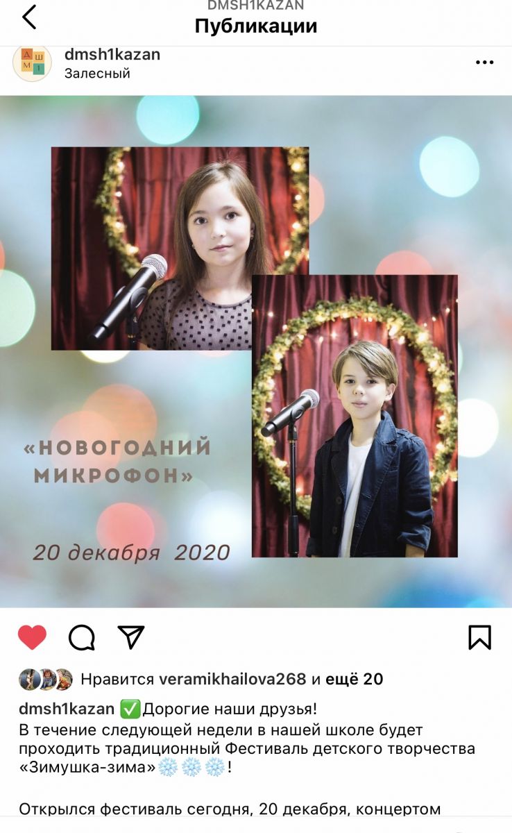 6. Фестиваль детского творчества "Зимушка-зима". В рамках фестиваля проведено 12 концертов в СОШ № 8, 32, 57, 151 с 20 по 26 декабря 2020 года Приглашение - анонс ФОТО