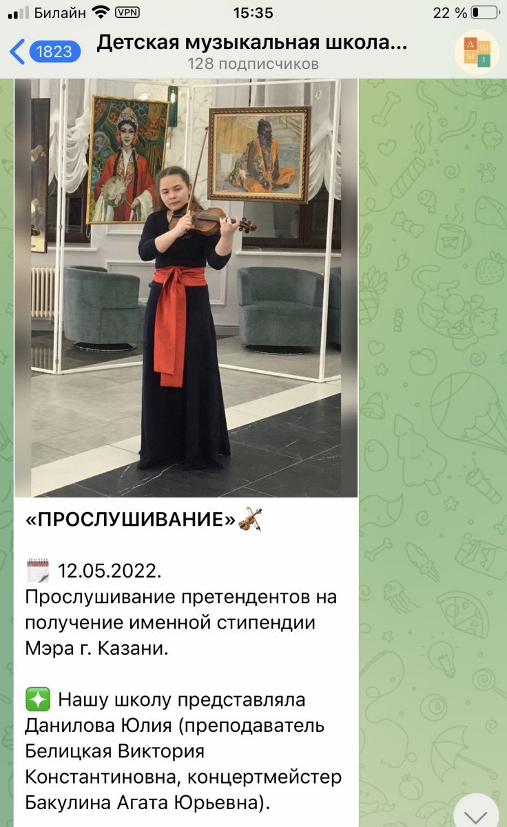 В прослушивании принимала учащаяся МБУДО "ДМШ № 1" по классу скрипки Данилова Юлия (преподаватель - Белицкая В.К., концертмейстер - Бакулина А.Ю.)