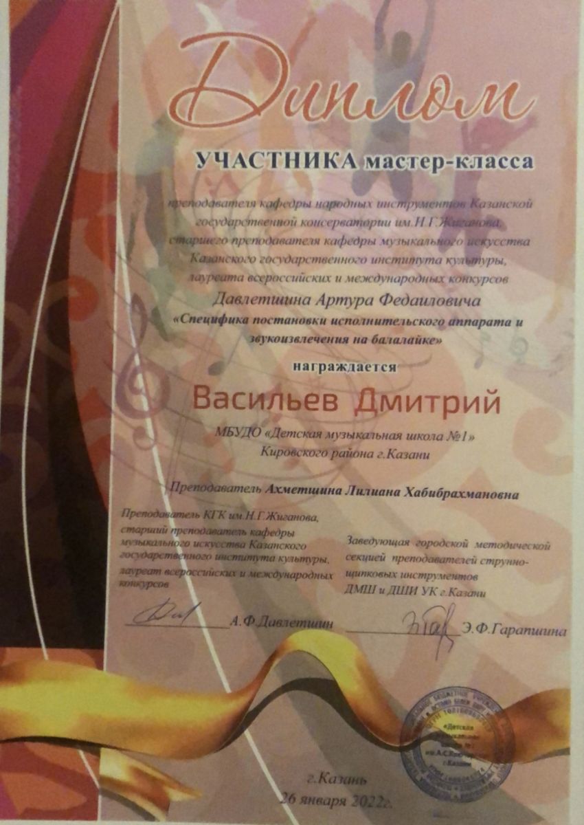 12. Участие в мастер-классе лауреата Всероссийских и международных конкурсов, преподавателя КГК им. Н.Г. Жиганова Артура Давлетшина. 26.01.2022