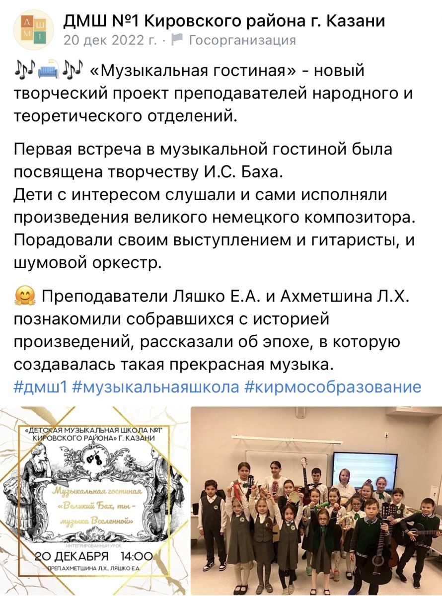 Муниципальное бюджетное учреждение дополнительного образования «Детская музыкальная школа №1" Кировского района» г. Казани