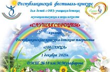Приглашаем Вас принять участие в VII Республиканском фестивале-конкурсе для детей с ограниченными возможностями здоровья - учащихся ДМШ и ДШИ «СЛУШАЯ СЕРДЦЕМ» в рамках Республиканского конкурса детского творчества «100//ЛИЦА»