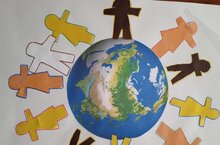 К международному дню толерантности дети старшей группы 7 сделали аппликацию "Хоровод Дружбы". Побеседовали на тему: "Мы такие разные и мы вместе".