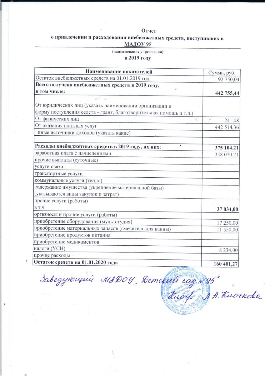 Отчет о привлечении и расходовании внебюджетных средств за 2019 год