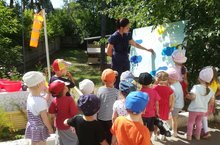 Дети в нашем детском саду весело проводят время: играют в подвижные игры, рисуют на асфальте, собирают гербарий. Особенно интересно им посещать метеостанцию. Здесь они наблюдают за именениямии в погоде, снова и снова узнают много интресного о растительном мире. Мы люби лето!