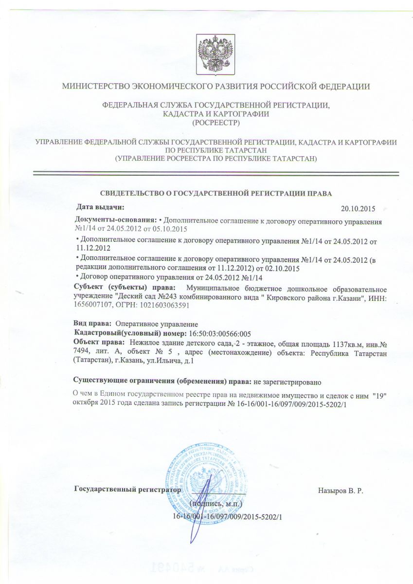 Свидетельство регистрации права  МБДОУ № 243.JPG