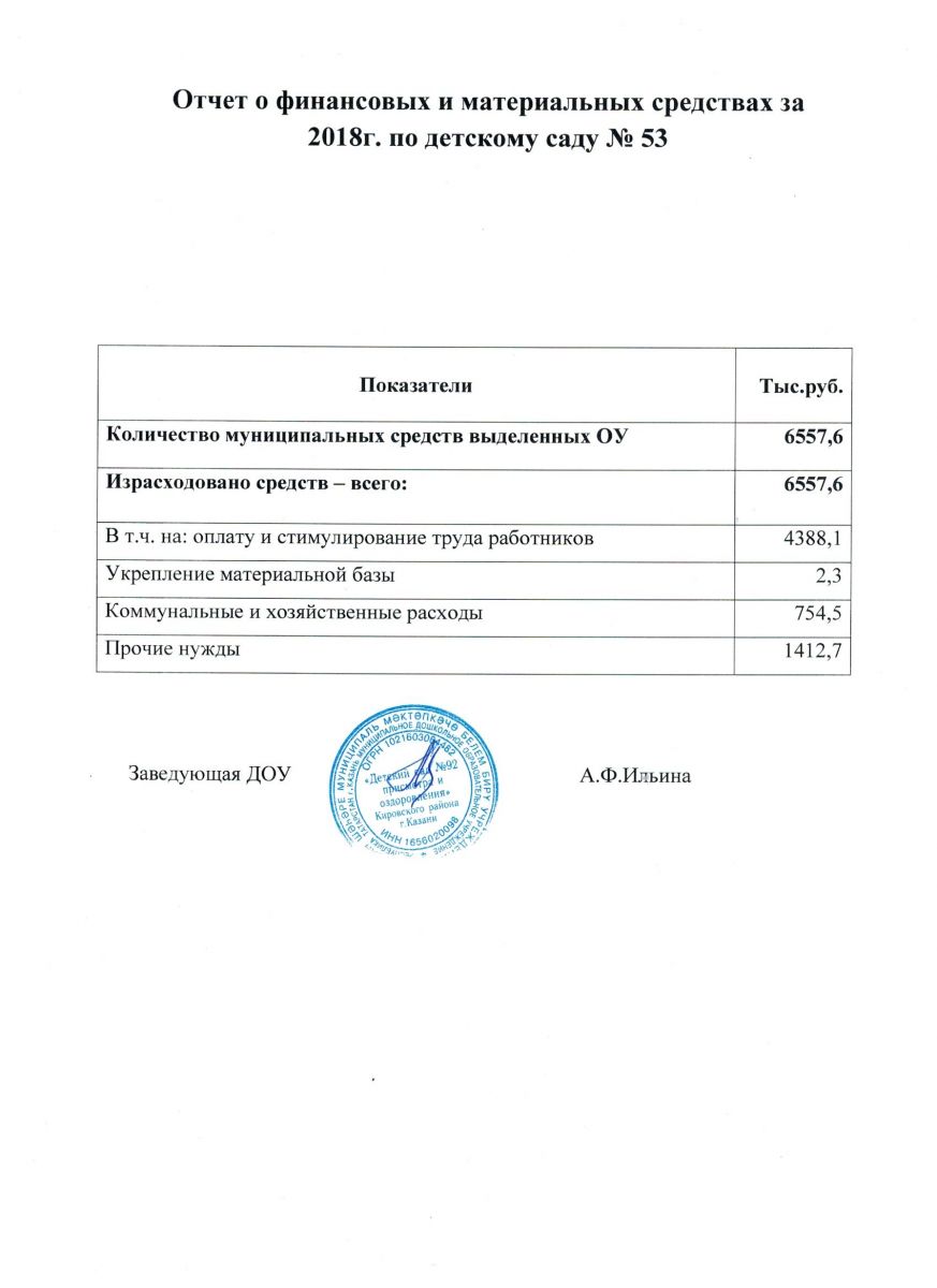 Отчет о материальных и финансовых средствах за 2018 год. здание 1