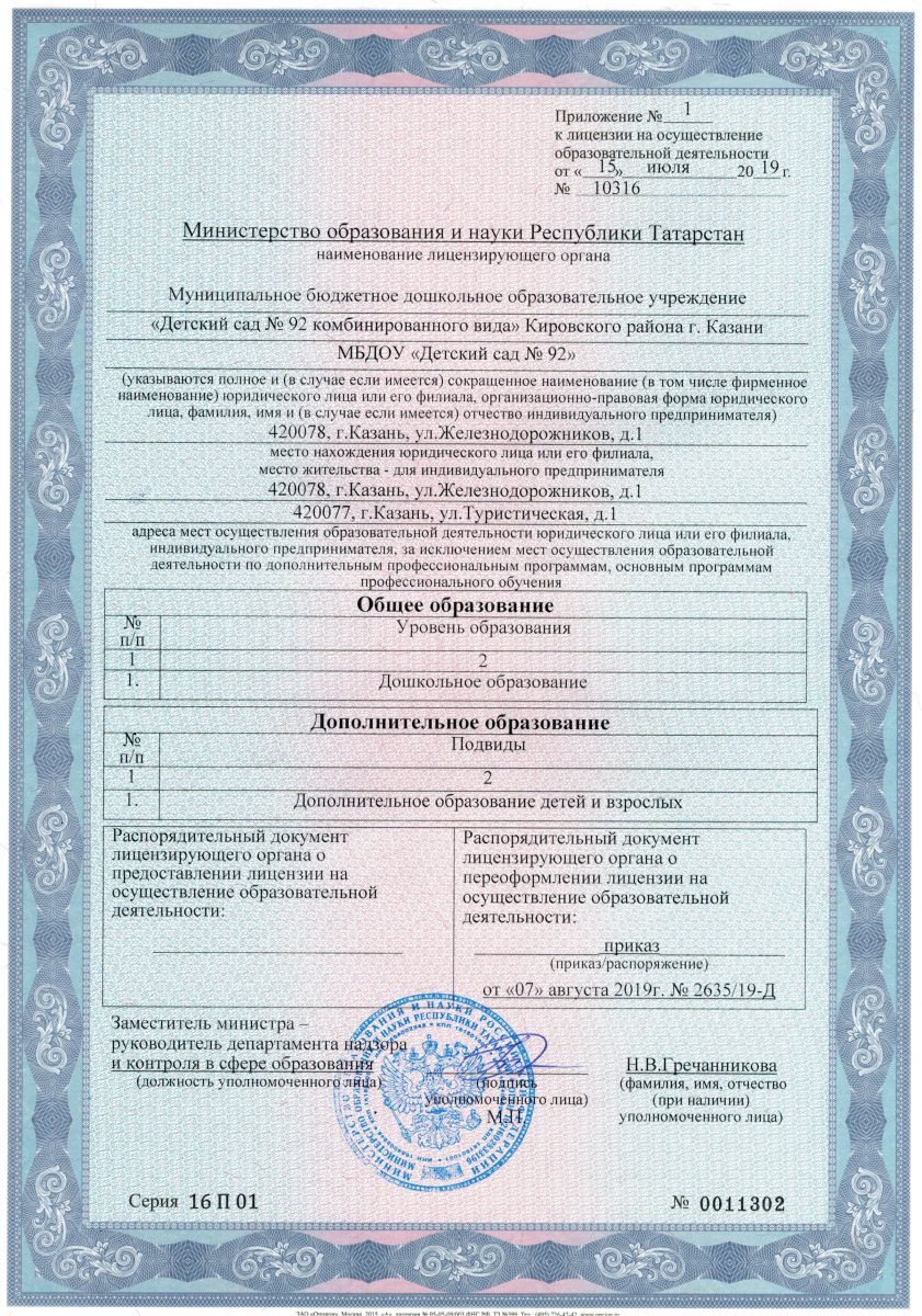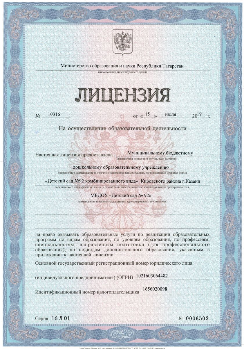 | Короткое название: | МБДОУ «Детский сад № 92" Кировского района г.Казани |