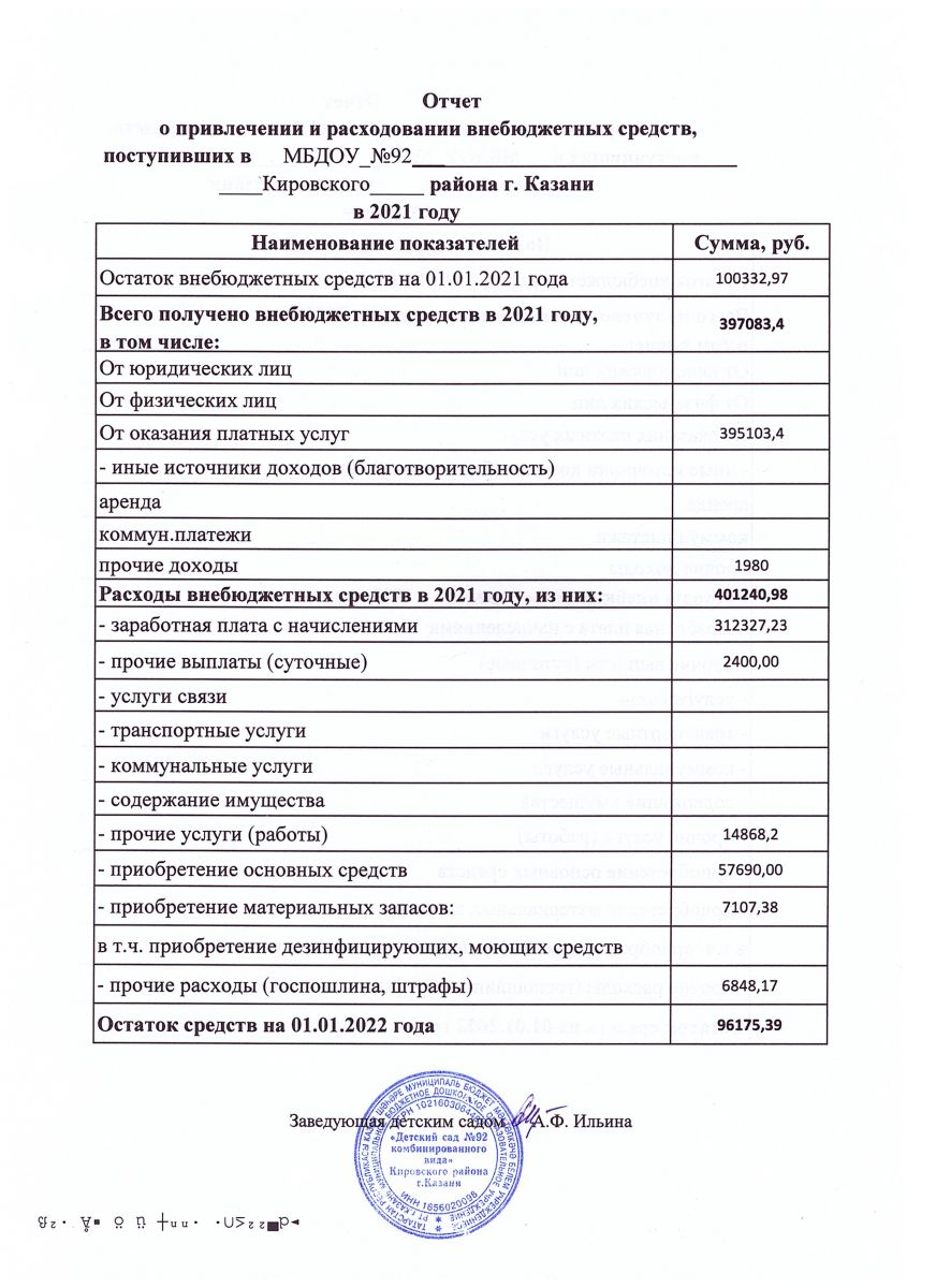 Отчет о привлечении и расходовании внебюджетных средств 2021