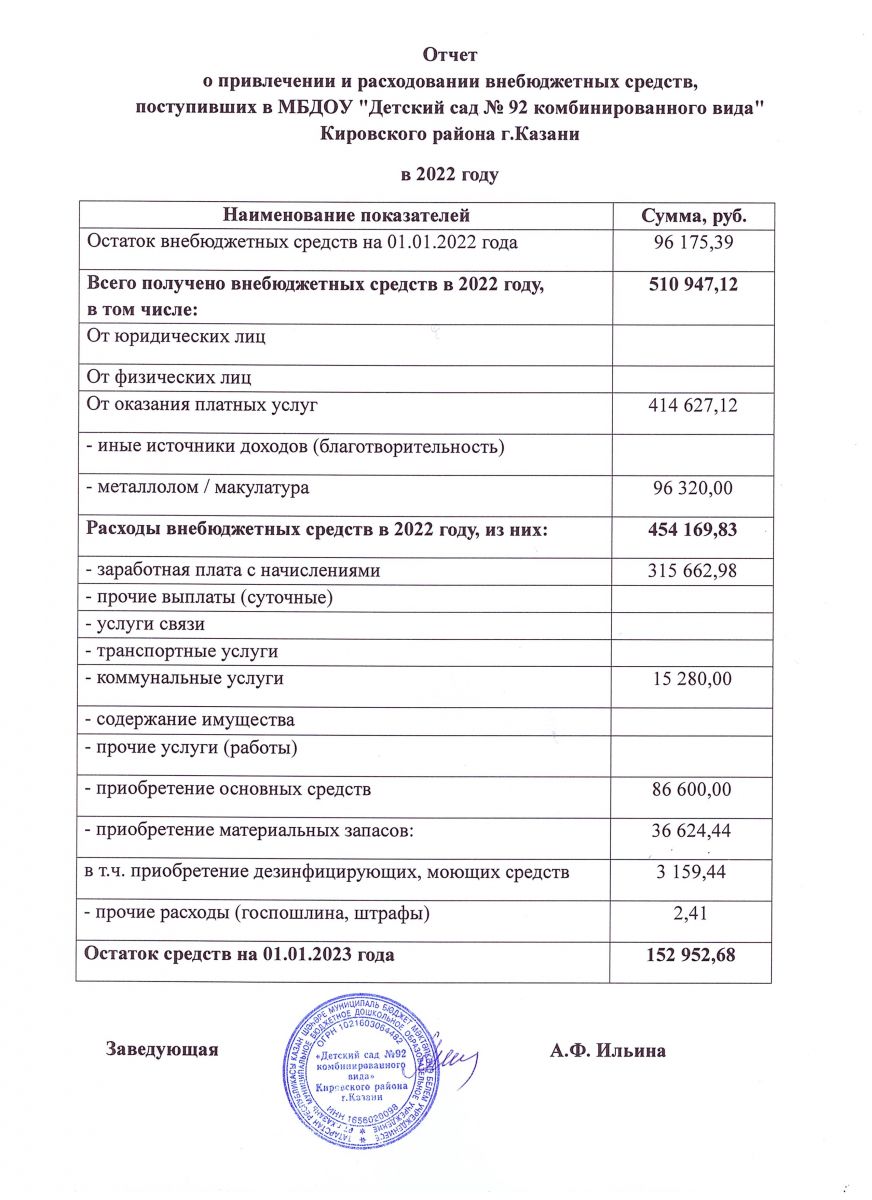 Отчет о привлечении и расходовании внебюджетных средвст 2022