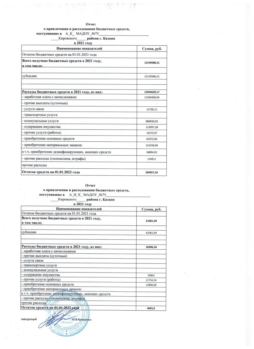 Отчёт о привлечении и расходовании бюджетных средств в 2021 году