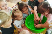 Воспитанники старших групп в день чистоты и порядка на прогулке экспериментировали с водой и мыльными раствором. После просмотра мультфильма "Мойдодыр" обсудили важность соблюдения личной гигиены.