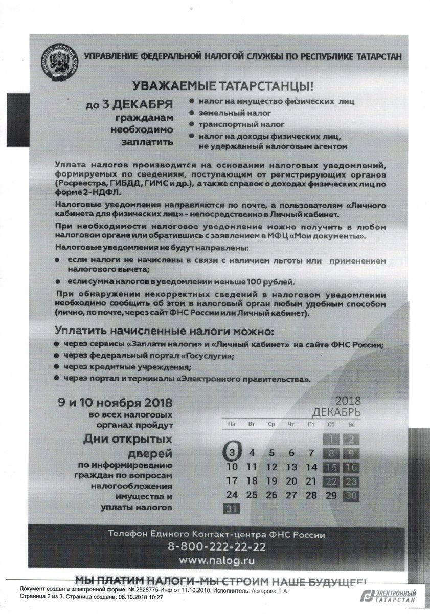 Обращение Управления Федеральной налоговой службы по Республике Татарстан