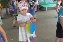 Сегодня воспитатели провели для детей "Праздник детства", посвящённый Дню защиты ребёнка. Дети вместе с клоунами Кнопкой и Веселинкой играли в интересные спортивные и коммуникативные игры, рисовали мелками, пускали мыльные пузыри.