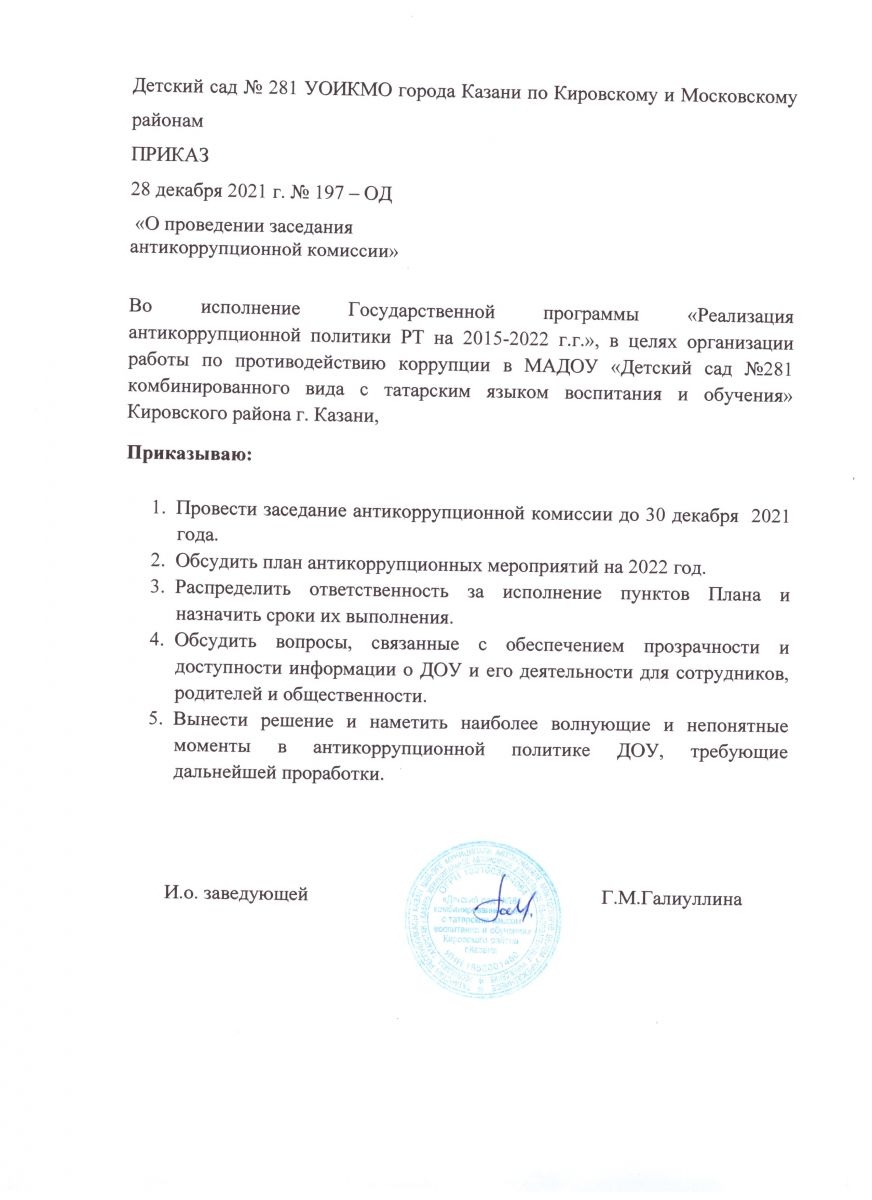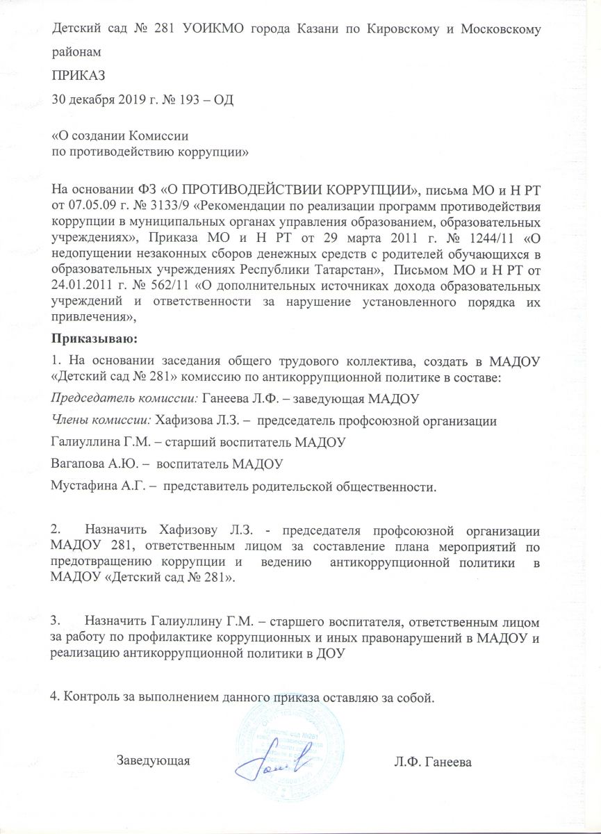 Приказ о создании антикоррупционной комиссии