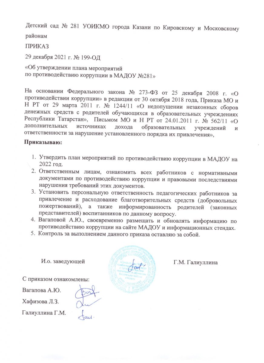 План противодействия коррупции в МАДОУ 2022
