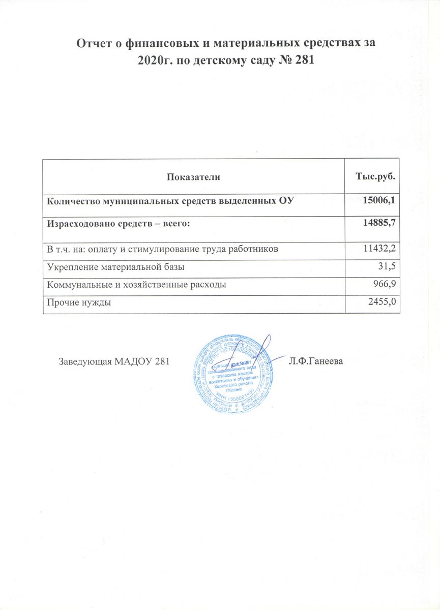 МАДОУ «Детский сад №281 комбинированного вида с татарским языком воспитания и обучения Кировского района г.Казани»