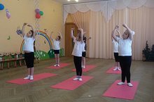 Хореография. Девчата стараются, вытягиваются в "струночку", демонстрируют разнообразные движения и позиции, показывают, чему их научила Блохина Елена, требовательный руководитель кружка.