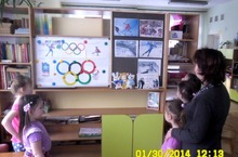 Началась «Олимпийская неделя» в ДОУ. Воспитатели провели цикл бесед «Олимпийские игры». Дети познакомились с символами олимпийских игр 2014 года в г. Сочи, рассматривали иллюстрации различных видов спорта.