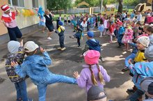 А у нас в детском саду сегодня ДЕТСКАЯ ОЛИМПИАДА! Мы поддерживаем наших спортсменов! Испытания для нас самые олимпийские: стрельба (метание мешочков в цель); баскетбол (забрасывание мяча в корзину); художественная гимнастика (эстафета с обручами); тенис (не урони мяч с ракетки). А ещё мы подняли флаг соревнований и пронесли факел с Олимпийским огнём (очень похож на настоящий). Дети старшей группы подготовили всем спортивный сюрприз - вольные упражнения с султанчиками. Организовали мероприятие воспитатели: Насырова Зульфия Харисовна и Насырова Зухра Рамильевна (да, среди педагогов есть династия!)