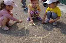 Для многих лето с детства – это рисование мелками на асфальте. В наше время ничего не изменилось. Детей тянет рисовать мелками на асфальте. Большинство работ – картин на асфальте, получаются коллективными. Причем дети начинают рисовать каждый свой рисунок. Уже в процессе рисования, обсуждая между собой каждый свой рисунок, у детей интереснейшим способом получается один общий сюжет. Асфальт для них в этот момент становится большим полотном для их творчества, воображения которому нет конца.