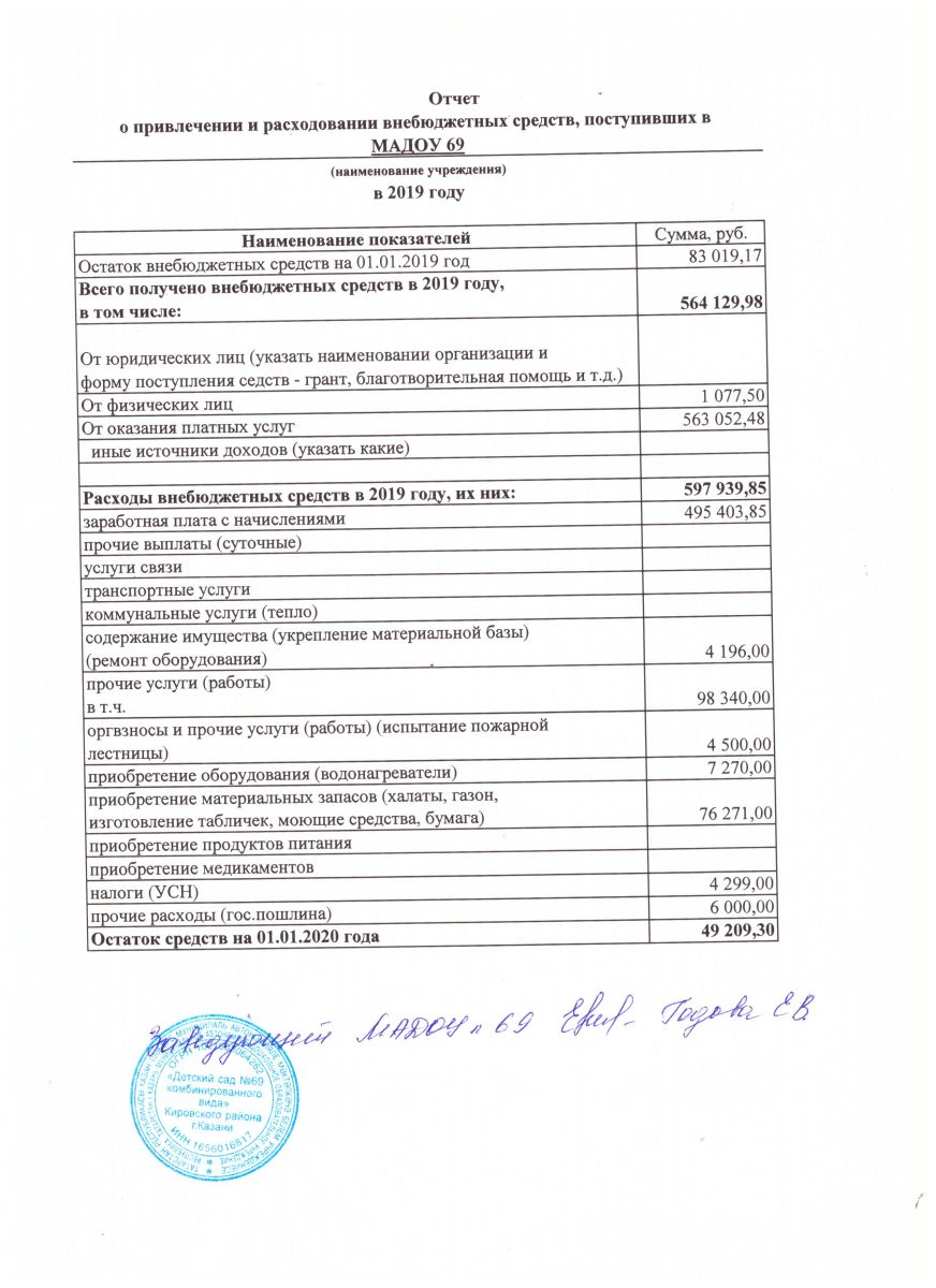 Отчет о привлечении и расходовании внебюджетных средств в 2019
