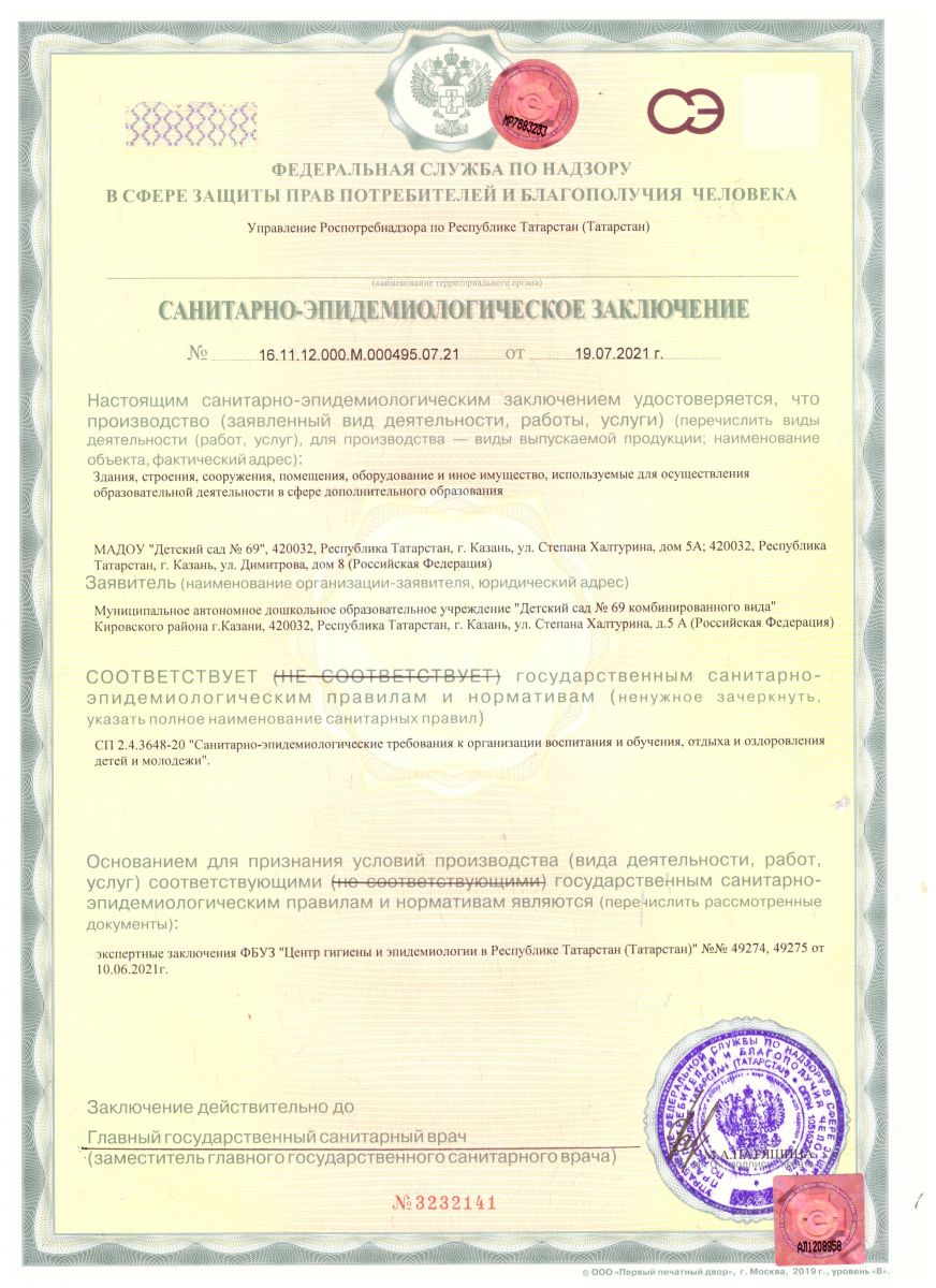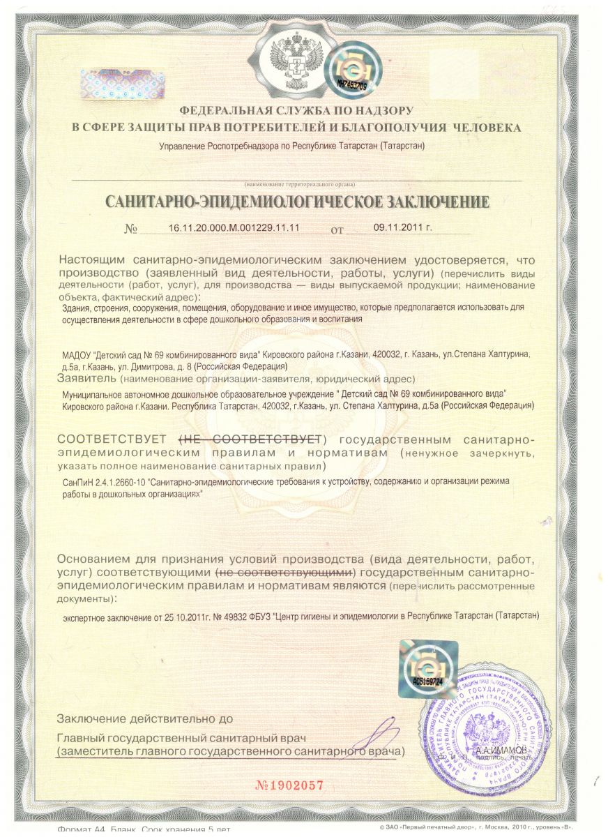 Санитарно-эпидемиологическое заключение (дошкольное образование и воспитания)