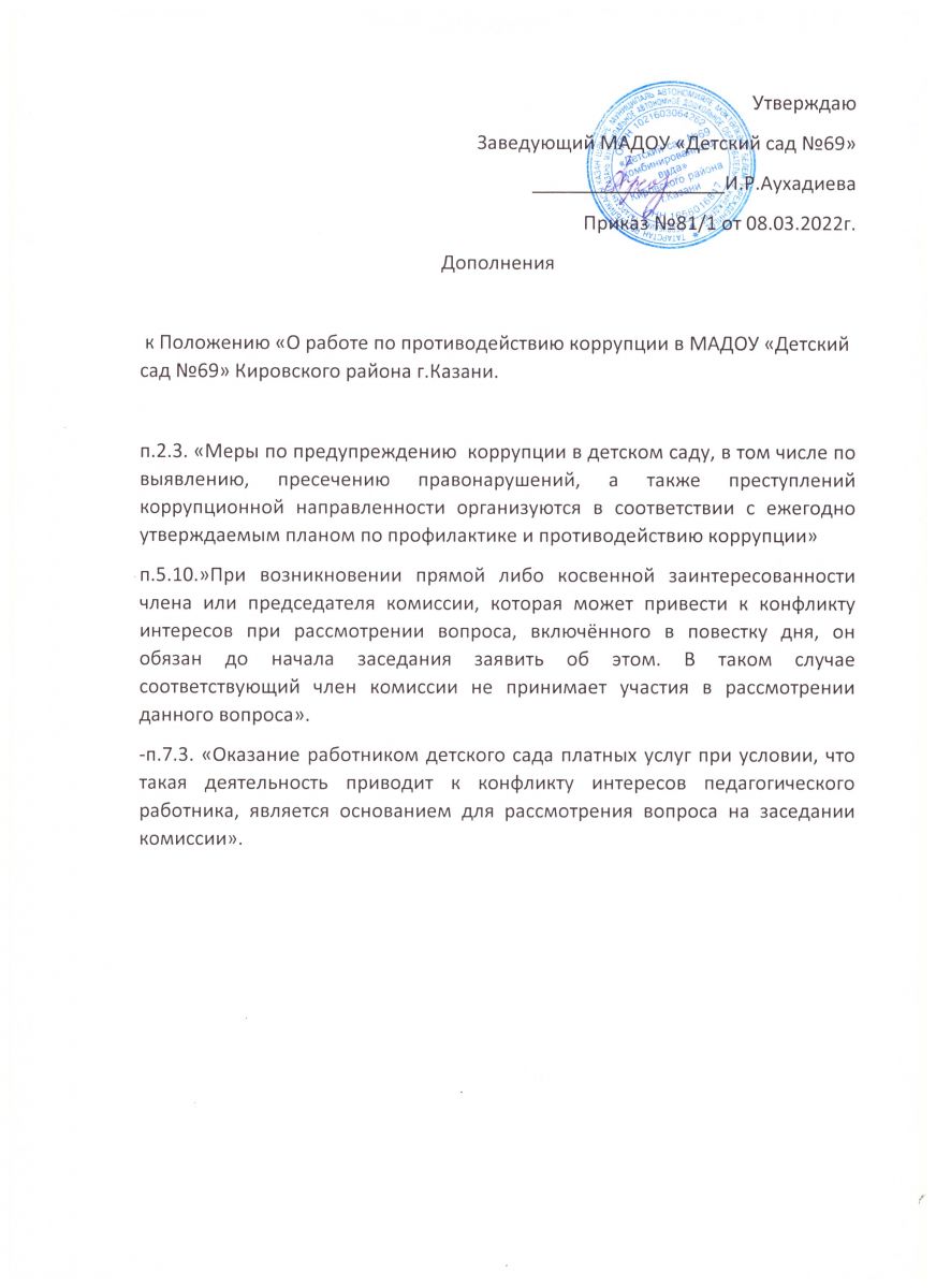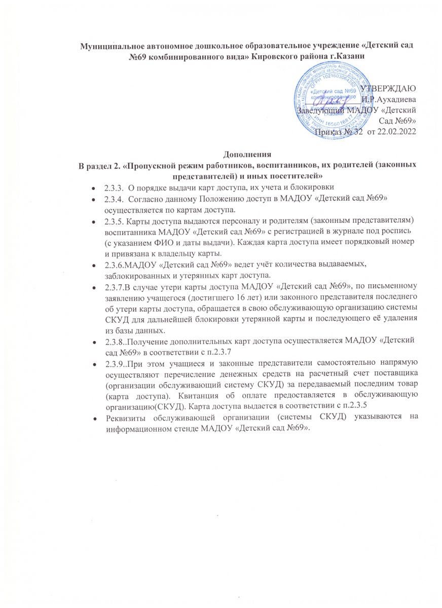 Дополнения к Положению контрольно-пропускного режима в МАДОУ №69