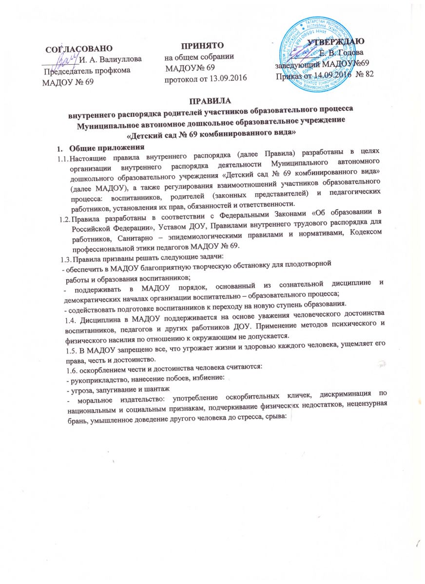 Правила внутреннего распорядка родителей участников образовательного процесса МАДОУ №69