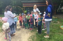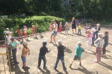 Балалар библиотекадан килгән кунак - Анна Станиславовна белән урамда спорт уеннары уйнадылар, ярыштылар, үзара көч сынаштылар.
