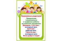 Предлагаем ознакомиться с графиком работы на майские праздники: