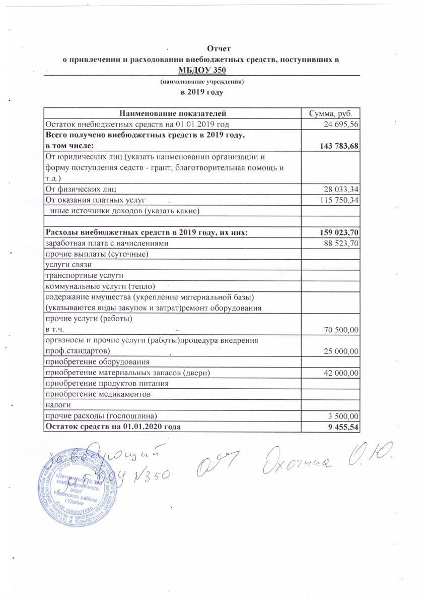 Отчет о привлечении и расходовании внебюджетных средств 2019
