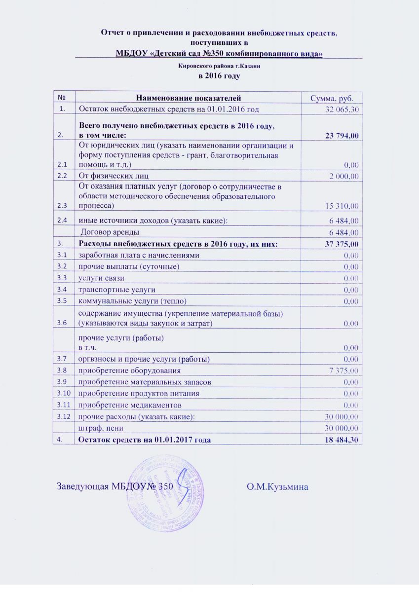 Отчет о привлечении и расходовании внебюджетных средств 2016