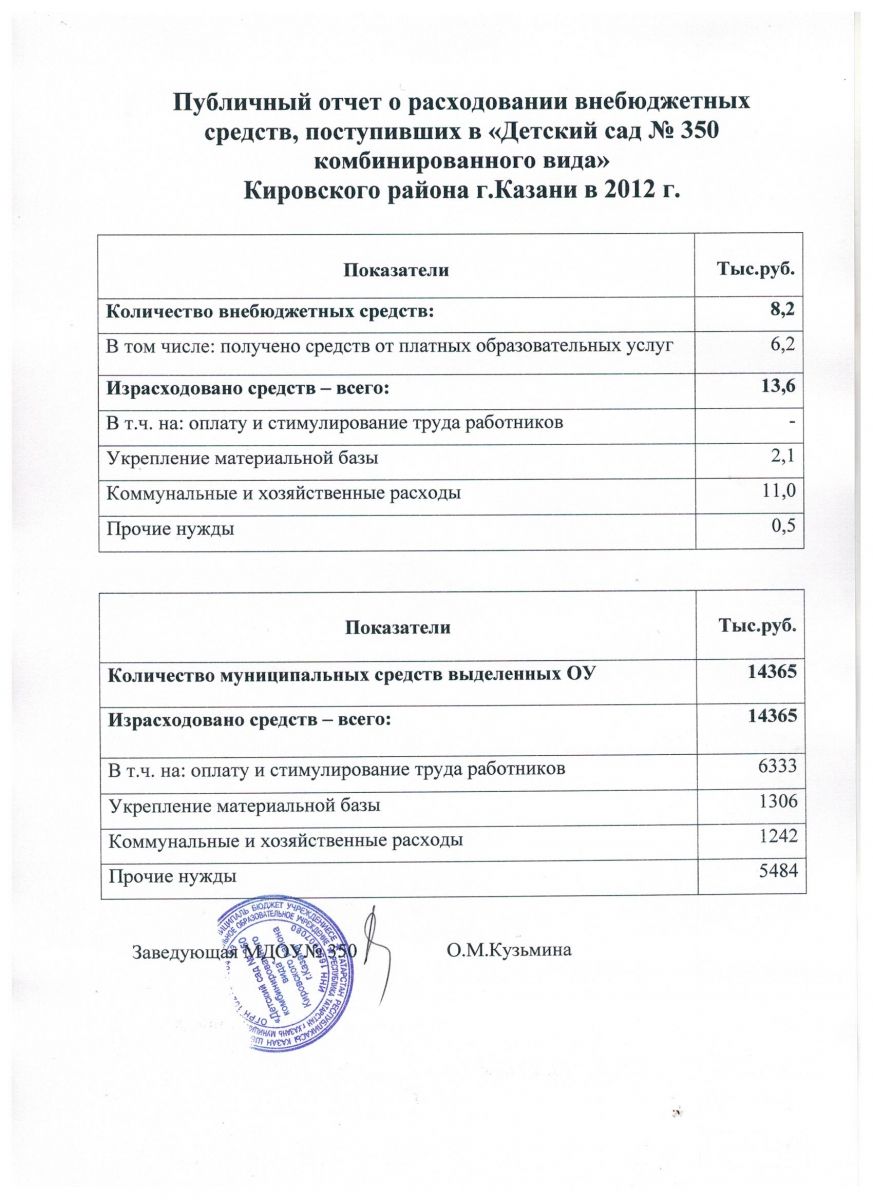 Отчет о привлечении и расходовании внебюджетных средств 2012