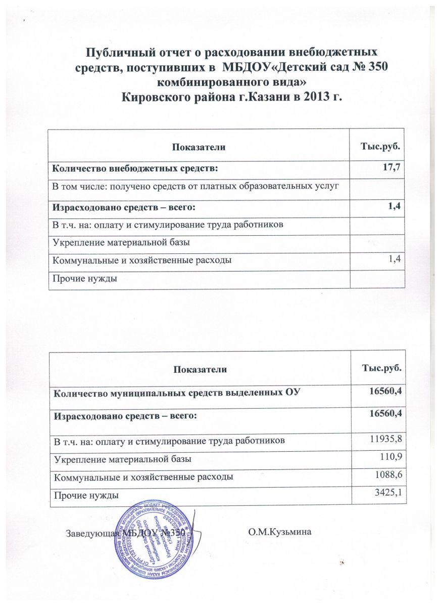 Отчет о привлечении и расходовании внебюджетных средств 2013