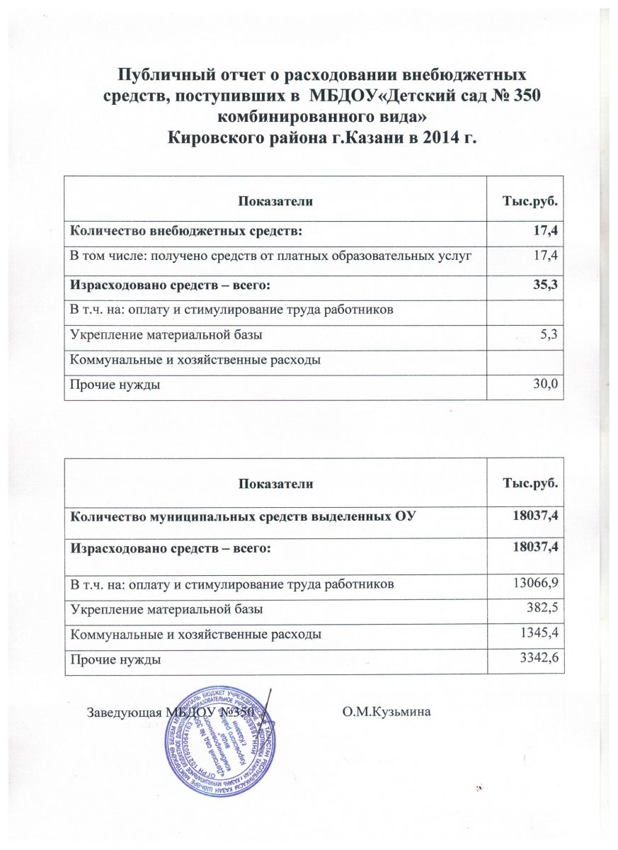 Отчет о привлечении и расходовании внебюджетных средств 2014