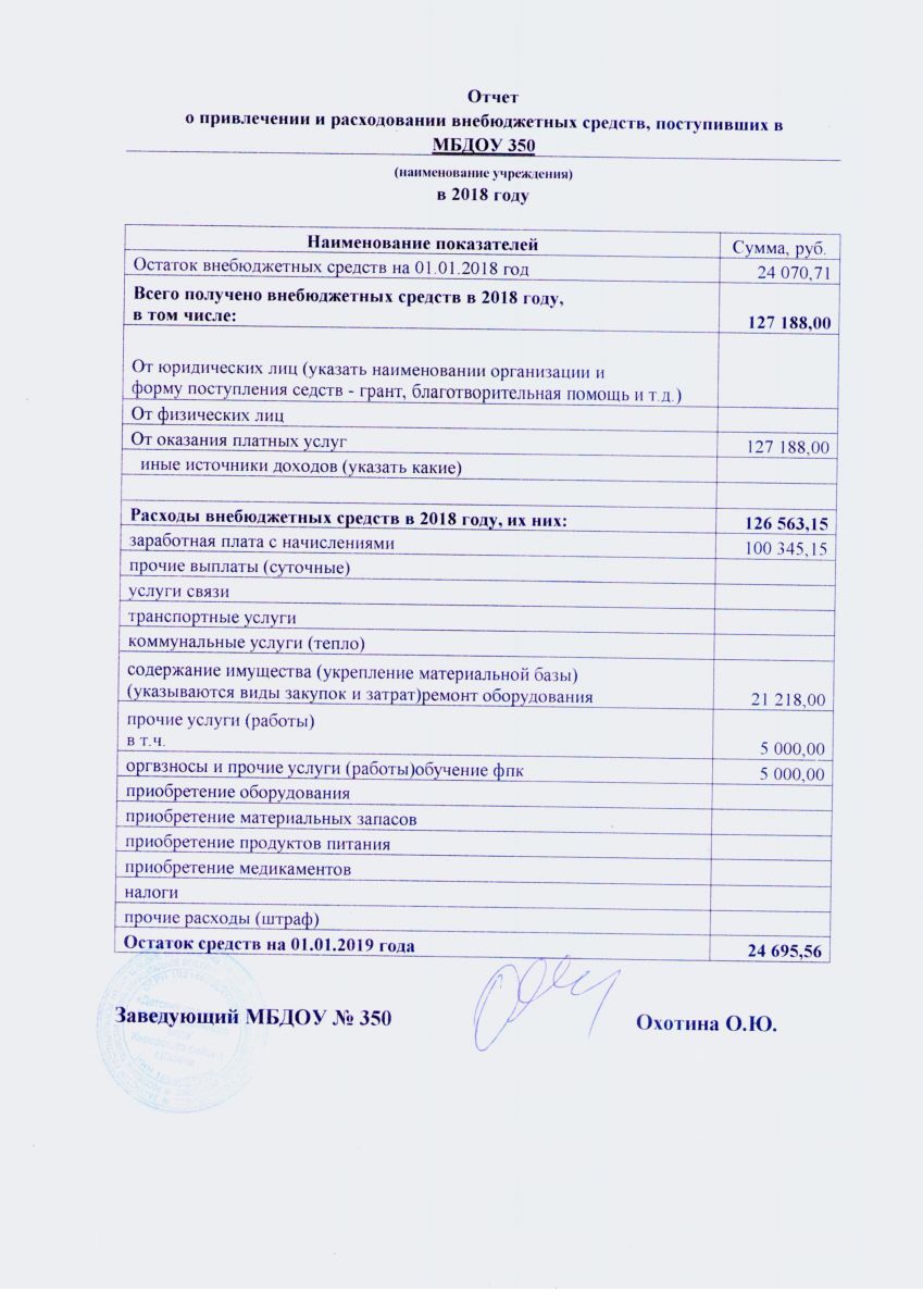 Отчет о привлечении и расходовании внебюджетных средств 2018