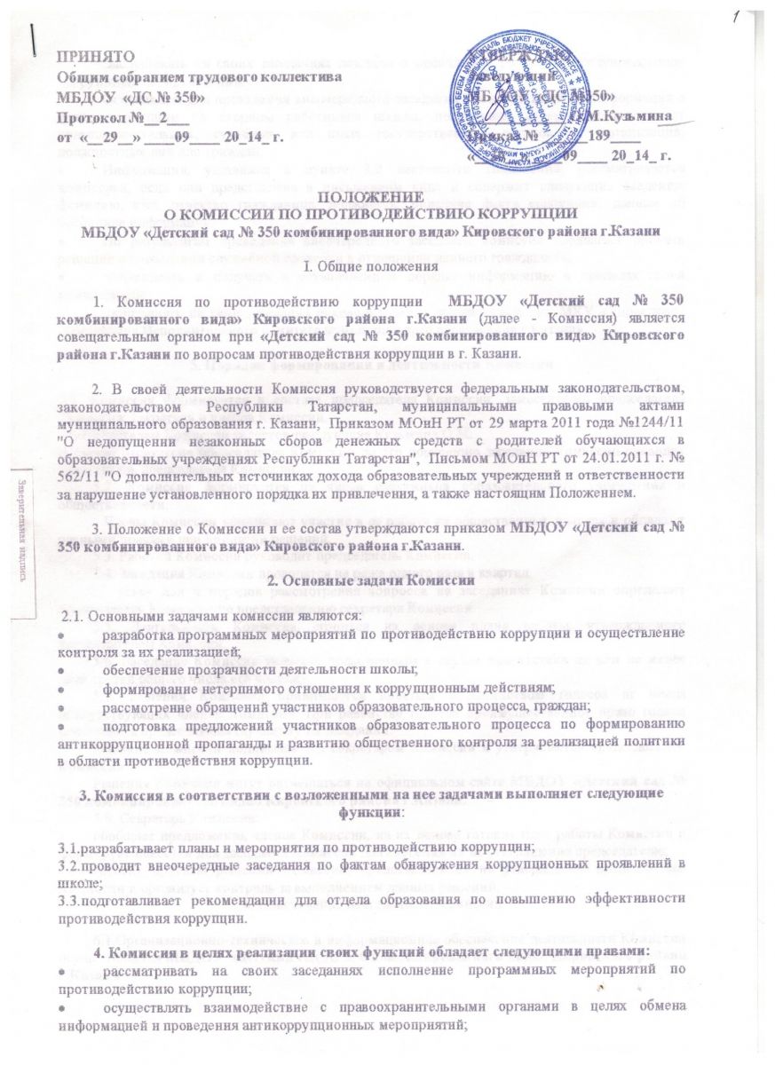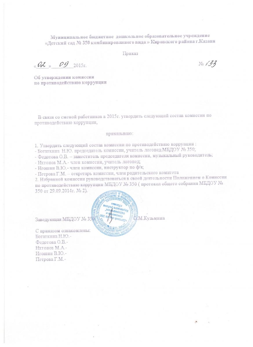 приказ об уверждении и введении в действие положения о комиссии по противодействию коррупции 2015 г