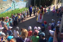 Сегодня в нашем саду прошло развлечение для детей "Путешествие по сказкам". К детям в гости пришла Белоснежка которая развеселила детей и поиграла с ними в разные игры. Затем Белоснежка предложила детям нарисовать мелками на асфальте своих любимых сказочных героев. Дети вдоволь повеселились и получили заряд бодрости и отличного настроения!