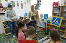 В непринужденной игровой форме воспитатель Бурганова Л.А. провела знакомство детей с правилами дорожного движения, ребята научились соблюдать ПДД, что дает возможность получить хорошие результаты. В гости к детям приходил сказочный персонаж «Зайка», который заблудился и испугался на улицах нашего большого города, от того что не знал как вести себя на дороге.