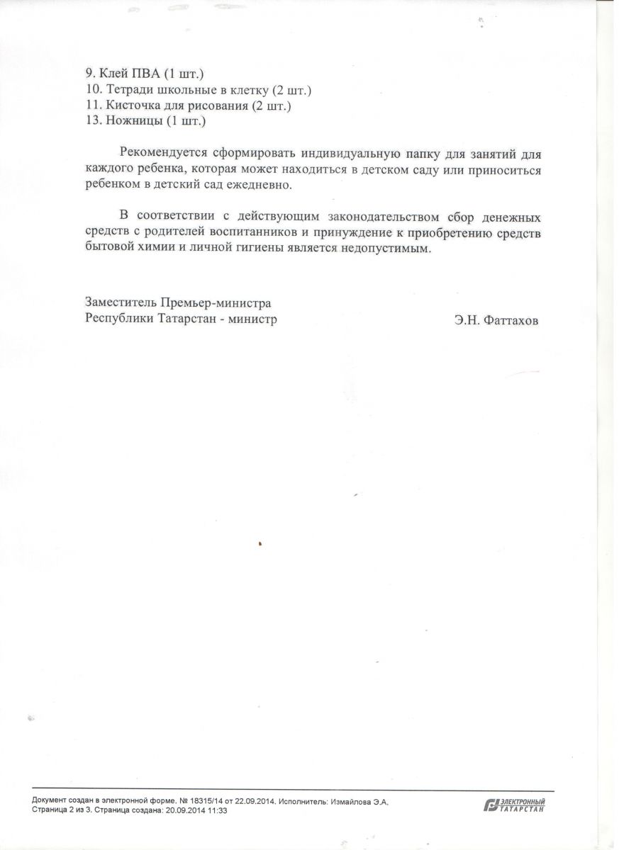 Письмо о перечне канцелярских принадлежностей в детском саду 2 стр.