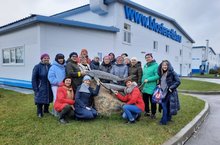 Педагогический коллектив школы на экскурсии в Кинопоселке Семрук. Мы посетили деревеньку, построенную для съемок сериала «Зулейха открывает глаза». Деревянные дома стоят на высоком берегу Камы, которая в фильме сыграла роль Ангары — здесь снимали эпизоды о непростой жизни Зулейхи и других раскулаченных крестьян в сибирской тайге.